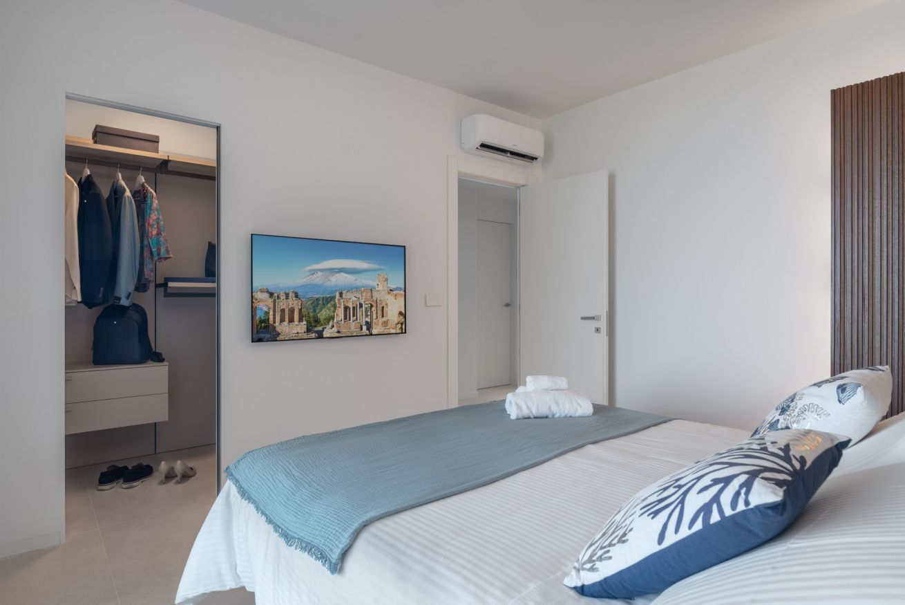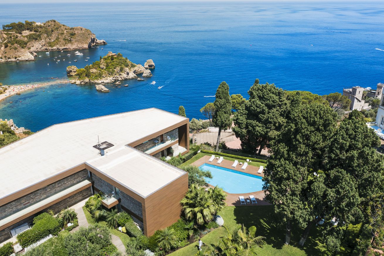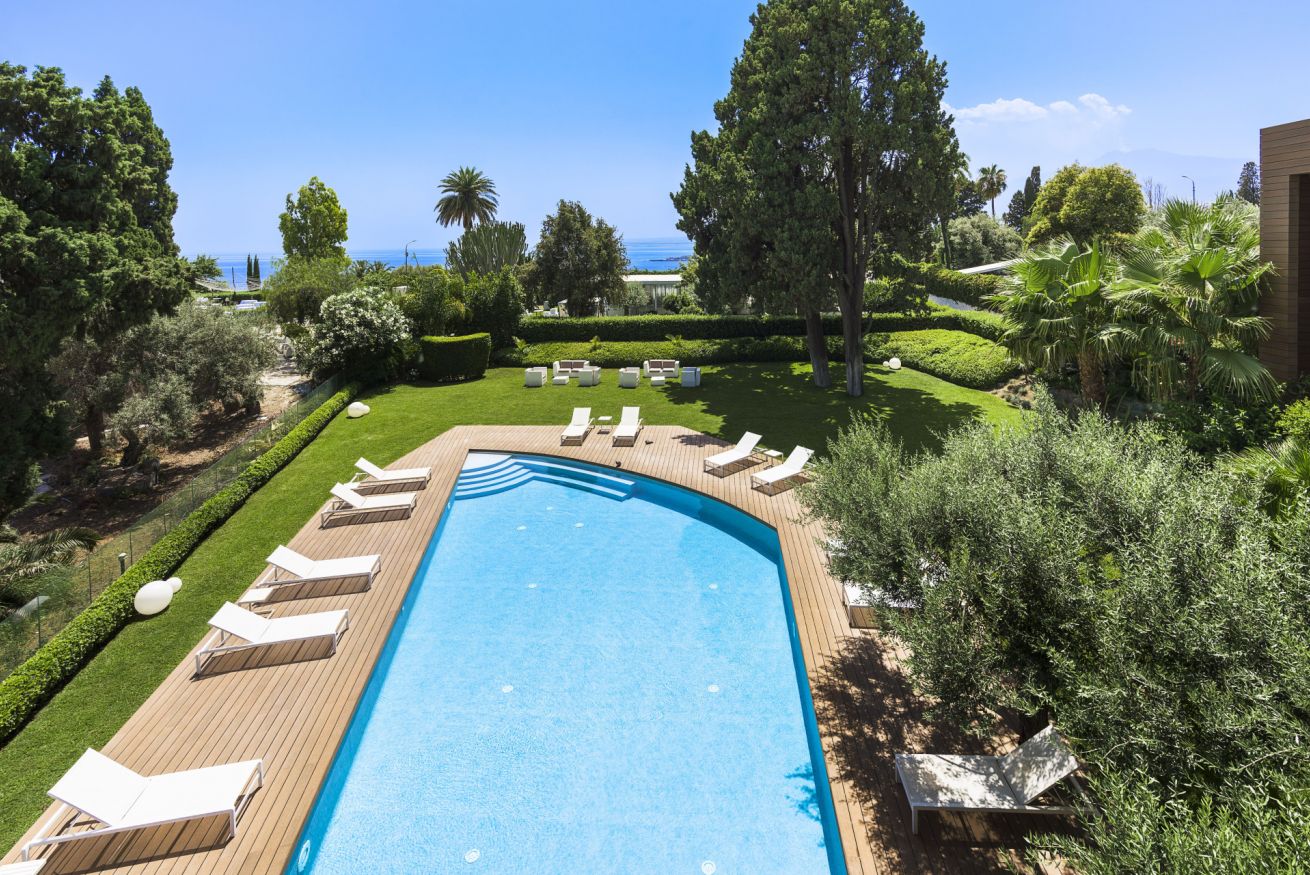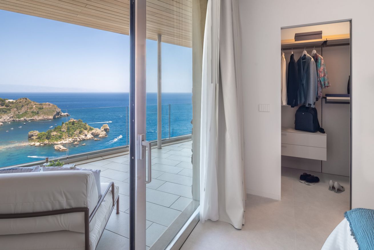 Located in Via Luigi Pirandello 72, Taormina, Aquamira is a luxury holiday home with a stunning sea view. Part of a modern residence surrounded by greenery, just a few steps from iconic sites such as Villa Mon Repos and the historic Hallington Garden created by Florence Trevelyan. A place where modern architecture respects the charm of Sicilian heritage.
