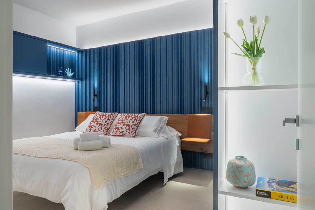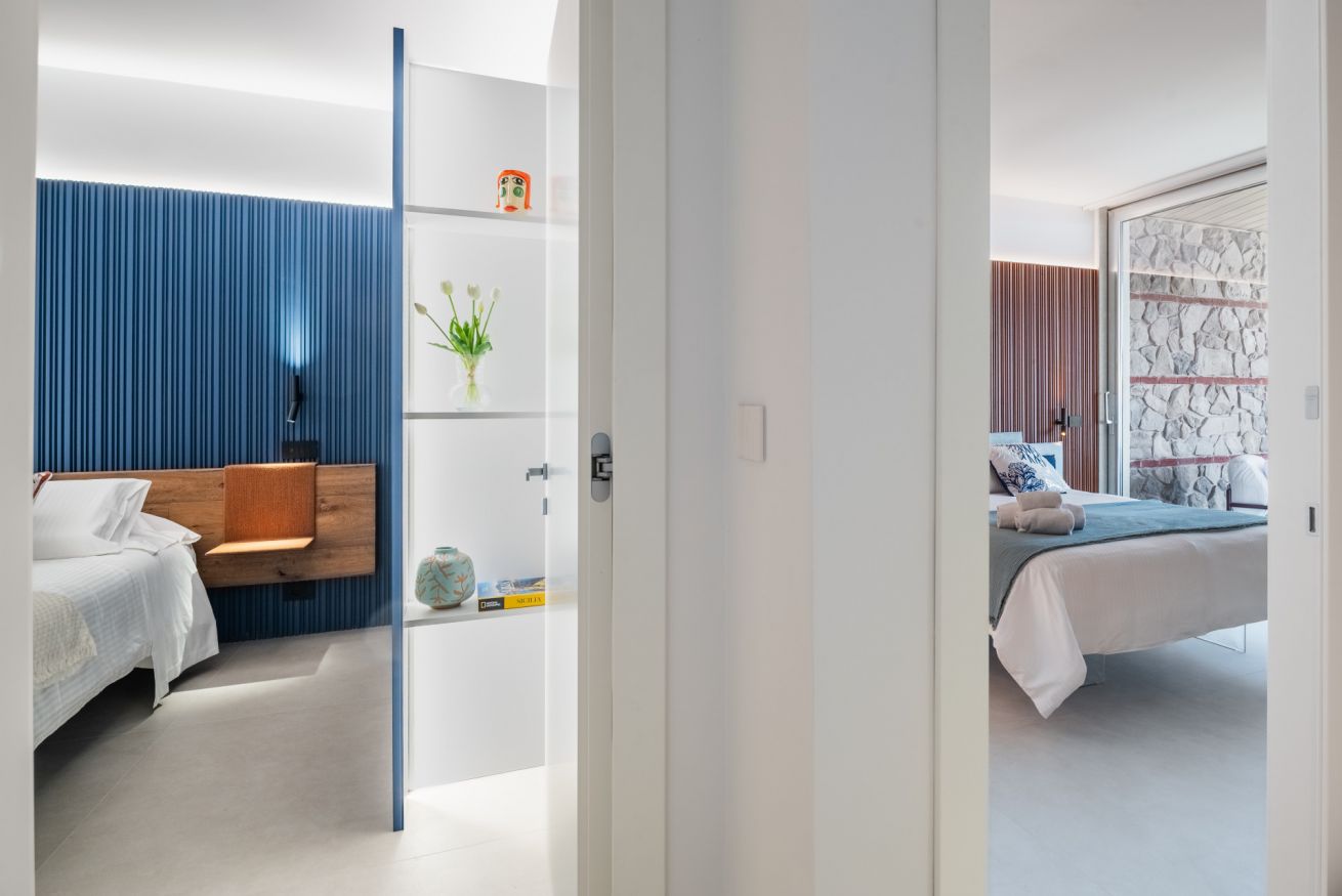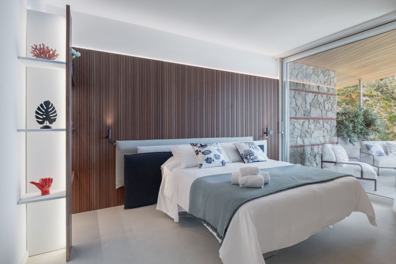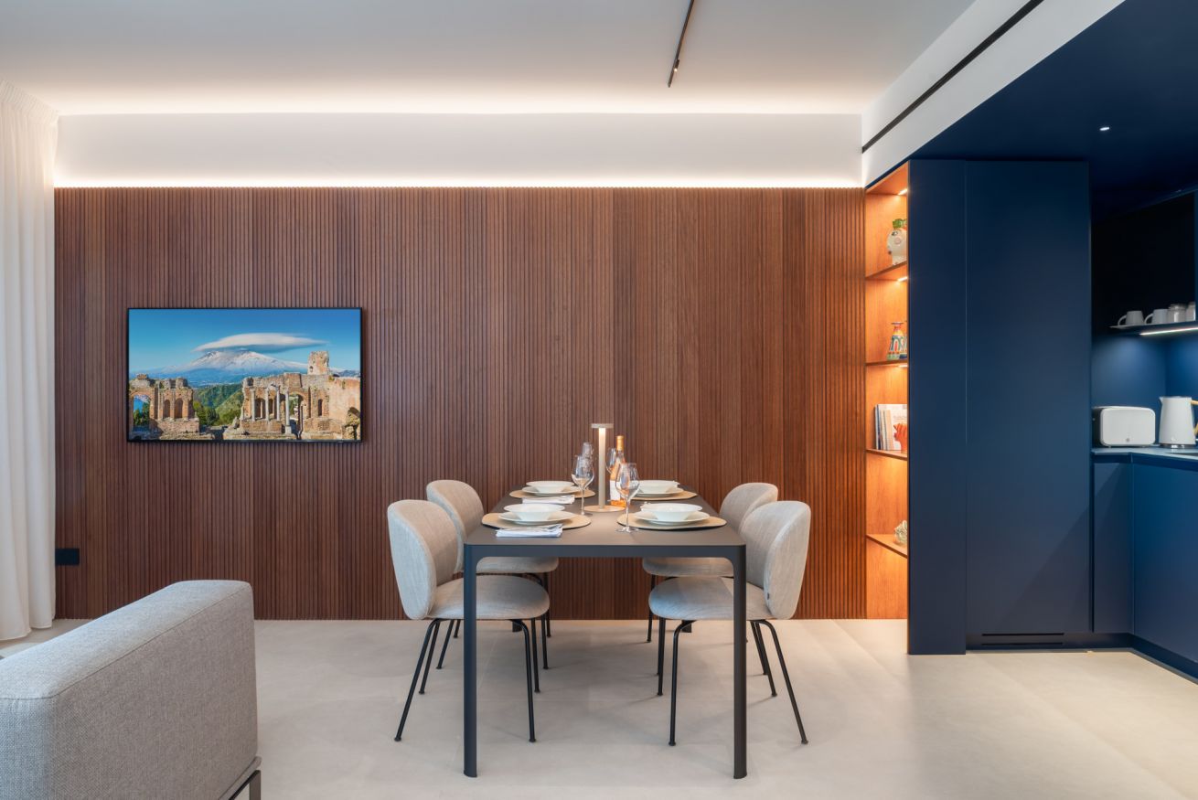 Located in Via Luigi Pirandello 72, Taormina, Aquamira is a luxury holiday home with a stunning sea view. Part of a modern residence surrounded by greenery, just a few steps from iconic sites such as Villa Mon Repos and the historic Hallington Garden created by Florence Trevelyan. A place where modern architecture respects the charm of Sicilian heritage.