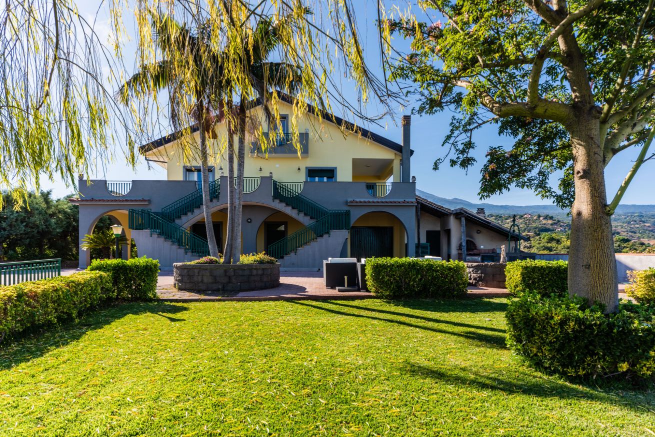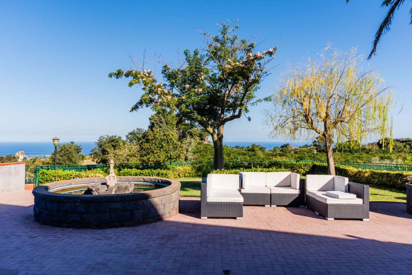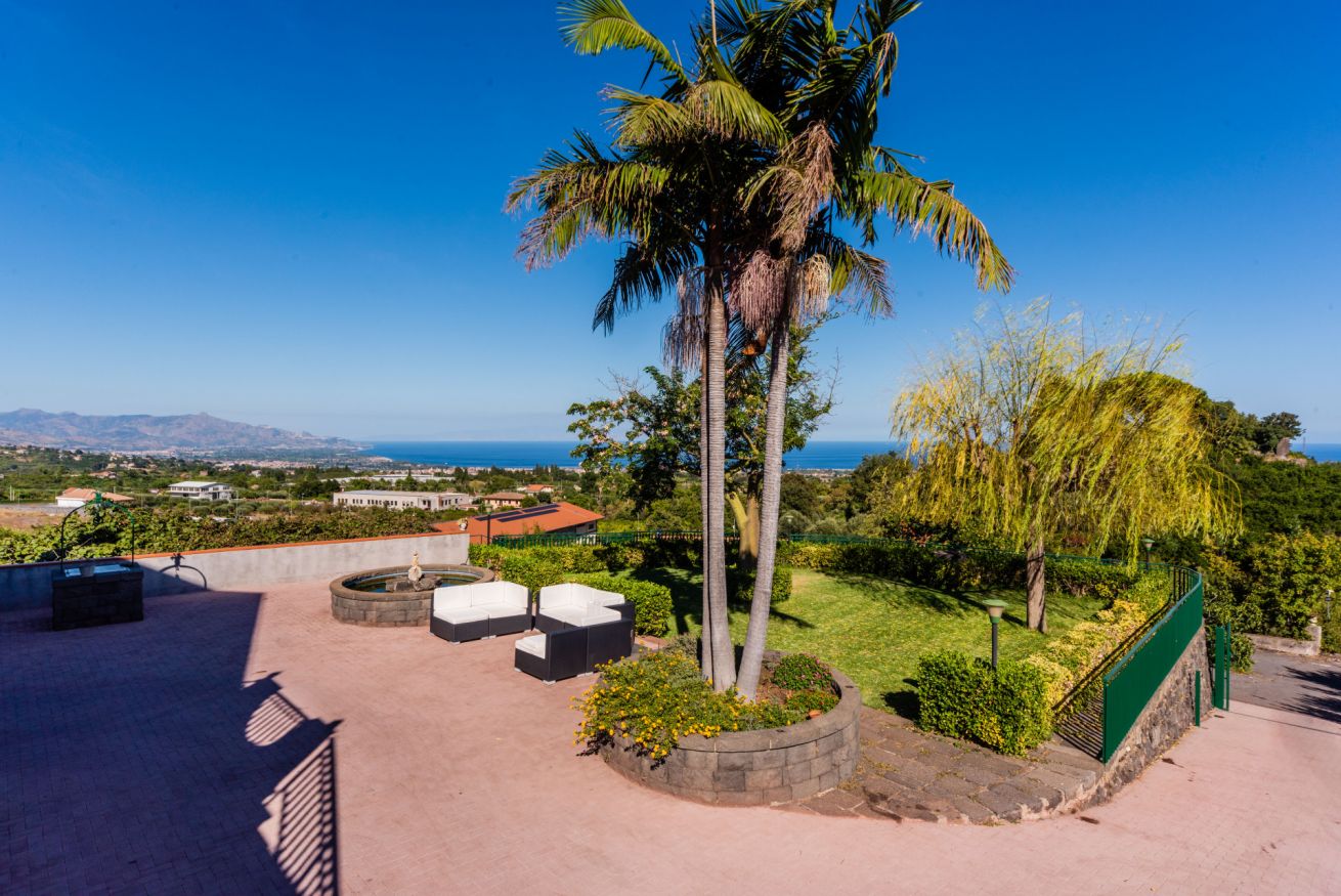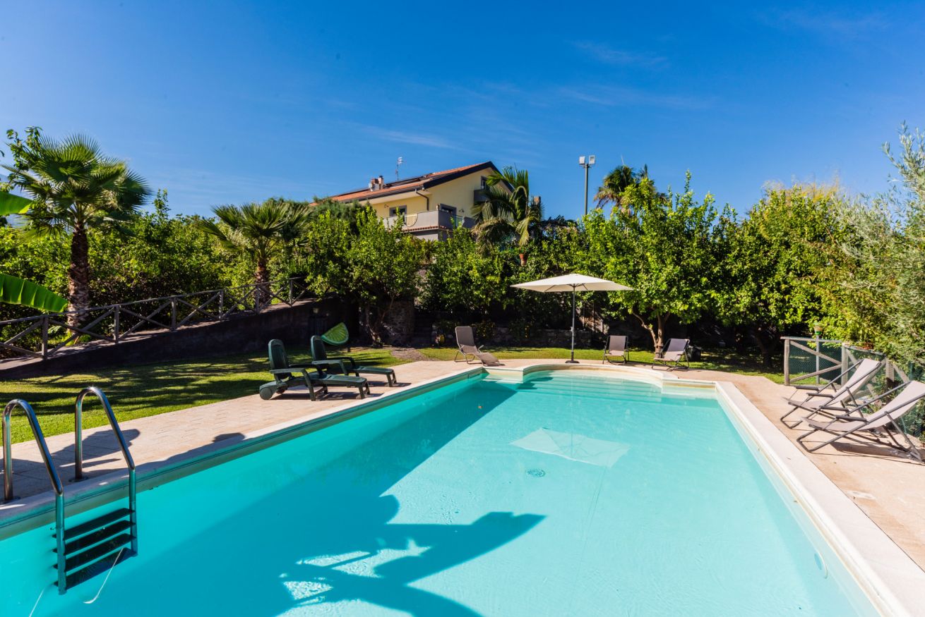 Panoramic villa with pool, sleeps 12, with 6 bedrooms and 4 full bathrooms. Recommended for families and groups of friends who want to immerse themselves in breathtaking views between Mount Etna and the sea, surrounded by calm vineyards and lemon trees.