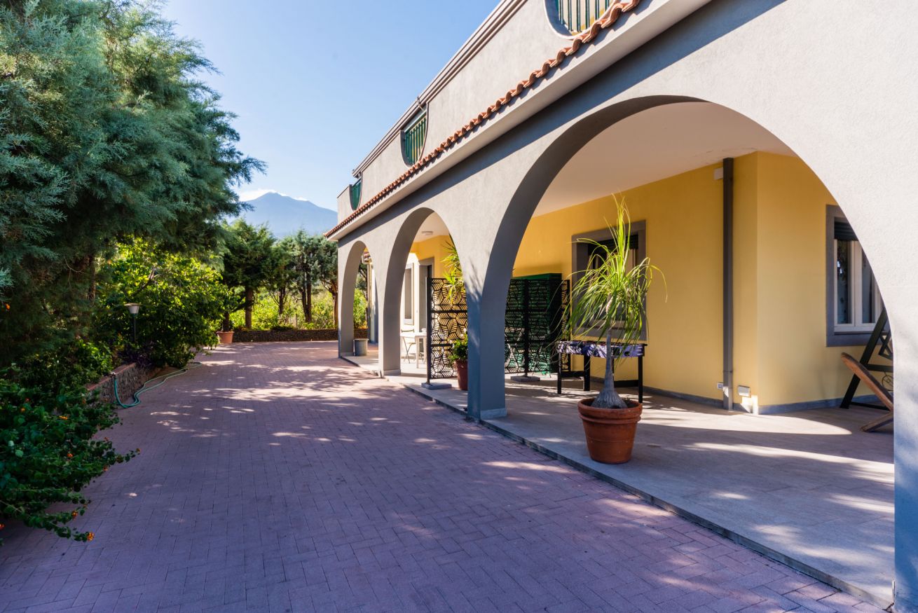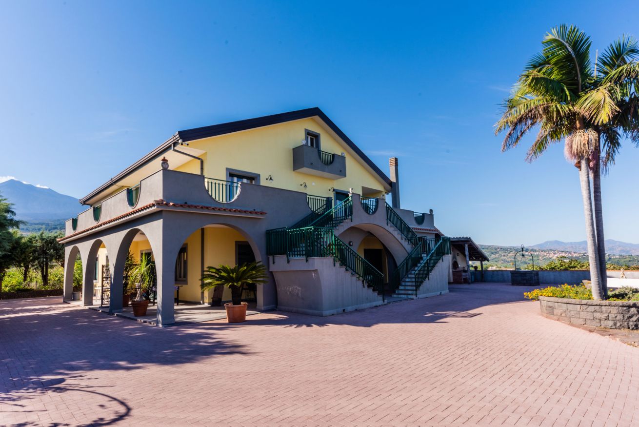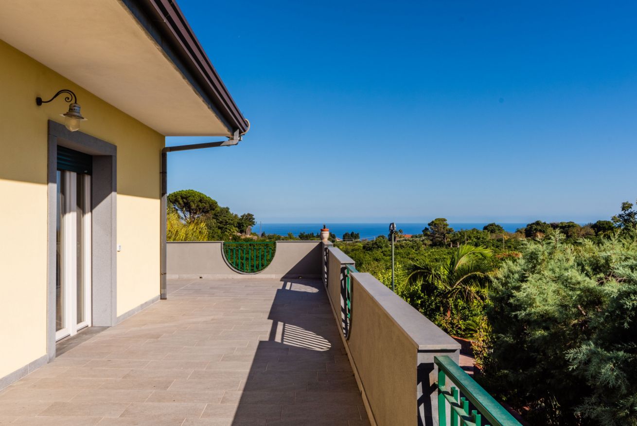 Panoramic villa with pool, sleeps 12, with 6 bedrooms and 4 full bathrooms. Recommended for families and groups of friends who want to immerse themselves in breathtaking views between Mount Etna and the sea, surrounded by calm vineyards and lemon trees.