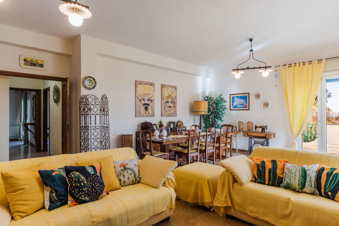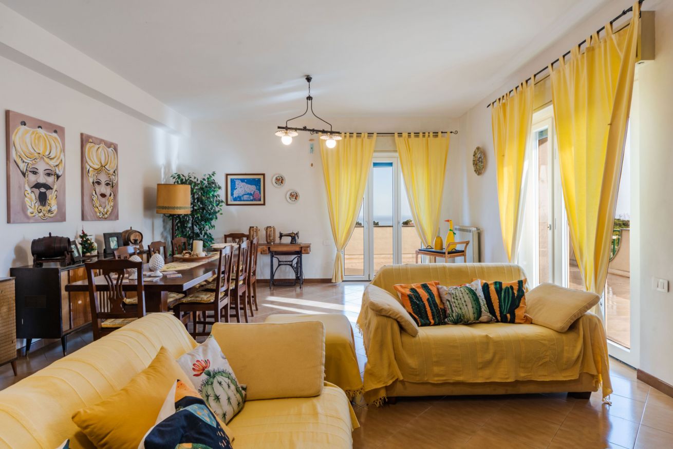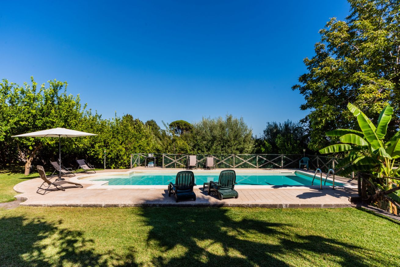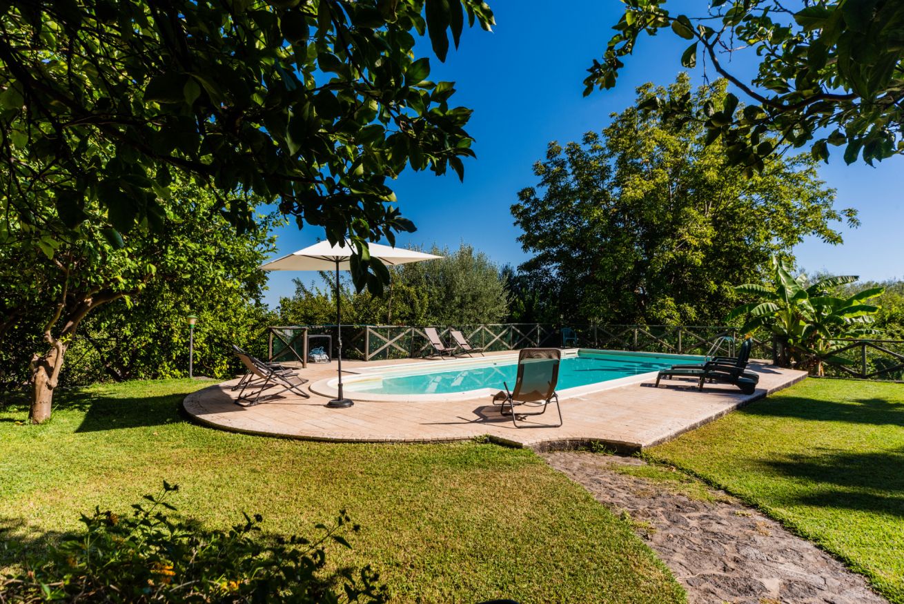 Panoramic villa with pool, sleeps 12, with 6 bedrooms and 4 full bathrooms. Recommended for families and groups of friends who want to immerse themselves in breathtaking views between Mount Etna and the sea, surrounded by calm vineyards and lemon trees.